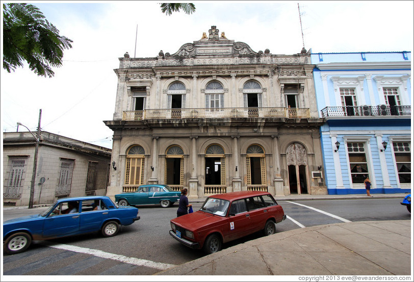 Blue, green, and red cars near Parque de la Libertad (Liberty Park).