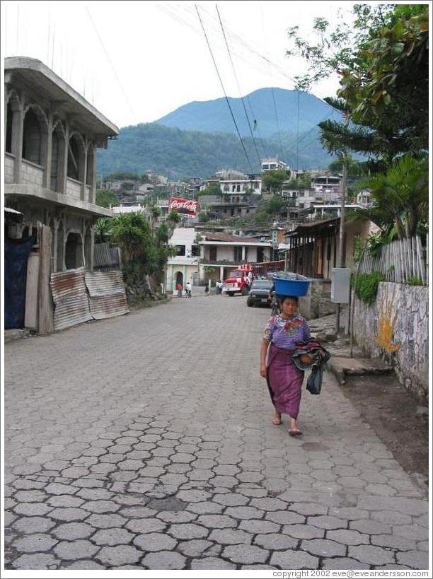Woman balancing basket on heat, Santiago.