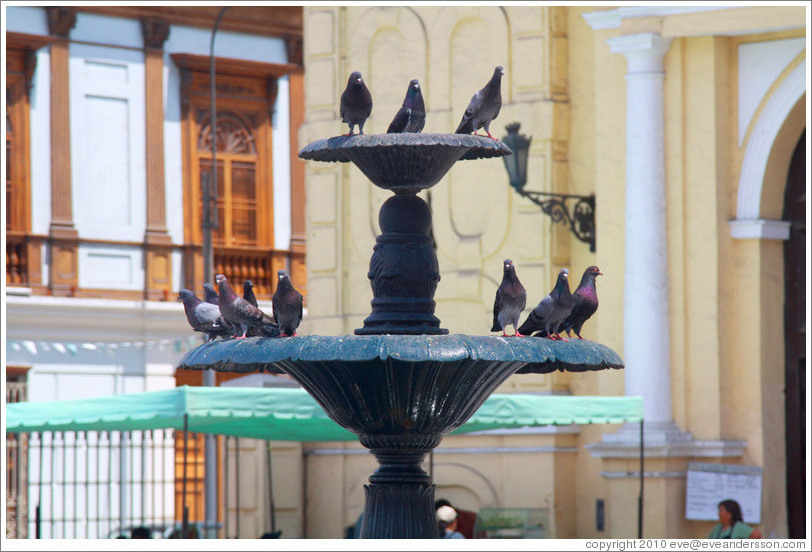 > Fountain with pigeons, Iglesia de San Francisco, Historic Center of Lima.