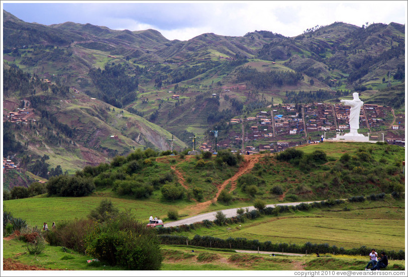 Statue of Jesus overlooking Cusco, seen from the Sacsayhuam?ruins.