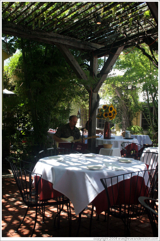 > Wappo Bar and Bistro, with guitarist playing.