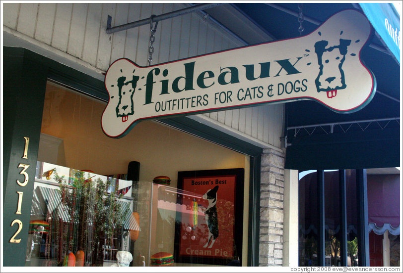 > Fideaux outfitters for cats and dogs. Main St. Downtown St. Helena.