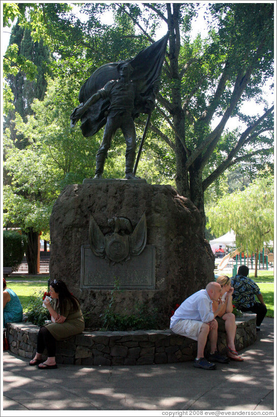 Bear Flag monument commemorating California's freedom from from Mexican rule on July 9, 1846. Sonoma Plaza.